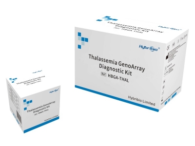 The Hybribio Thalassemia GenoArray Diagnostic Kit is designed for detection of α-thalassemia and β-thalassemia from each blood sample. Biotinylated primers were designed for specific amplification of α-globin gene deletion / mutation regions and β-gene deletion / mutation region respectively.